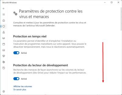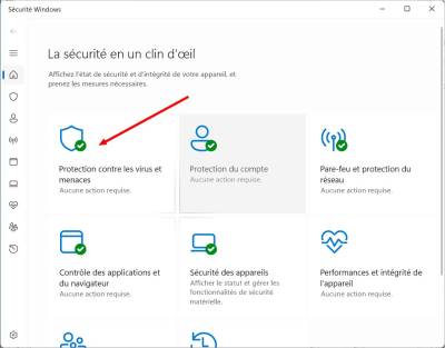 <tab> - Sinon : <color #22b14c>Paramètres</color> > <color #22b14c>Confidentialité et sécurité</color> > <color #22b14c>Sécurité Windows</color> > Ouvrir <color #22b14c>Sécurité Windows</color>.