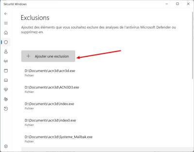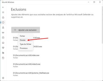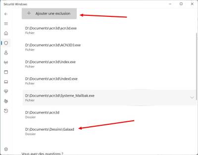 <tab> - “<color #22b14c>Ajouter ou supprimer des exclusions</color>”.