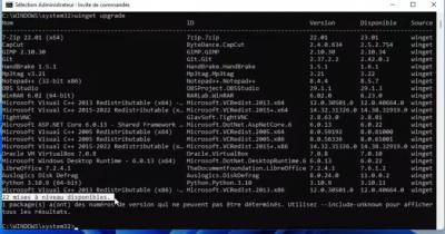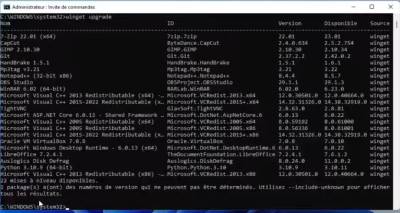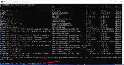 <tab> - Taper “<color #22b14c>winget upgrade – all</color>”, pour tous mettent a jours.