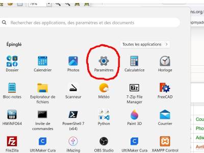 - Bouton roue cranté Paramètres.