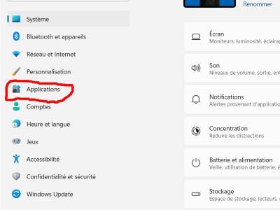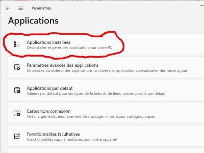 - Applications installées.