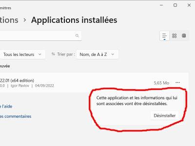 - Une confirmation apparait, clic sur Désinstaller.