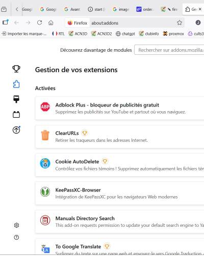 - Un menu s'affiche Gestion de vos extensions, taper dans la barre de recherche “Bitwarden”, regarder que l’icône est identique clic sur ajouter, faite la même chose avec “uBlock Origin”.