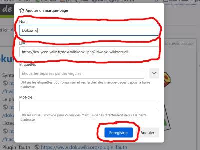 - Une page s'affiche, dans “Nom” mettre le nom de la page-lien, dans “URL” faite collé l'adresse sauvegarder et puis “enregistrer”.