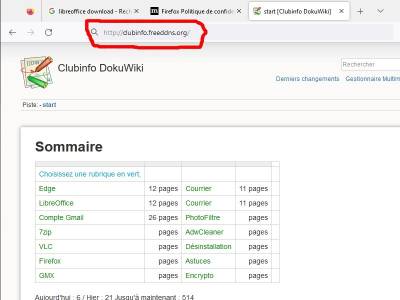 - Adresse DokuWiki du Clubinfo “http://clubinfo.freeddns.org/doku.php”