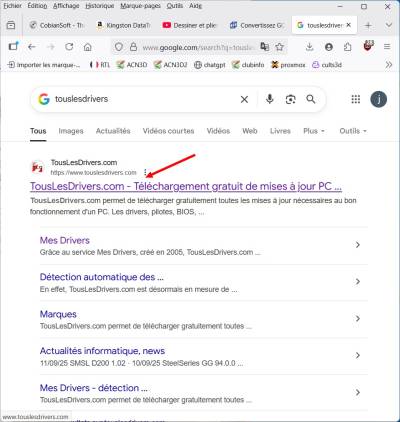 - Allez dans la barre de recherche, et tapez “ TousLesDrivers.com ”, vérifier bien l'adresse.