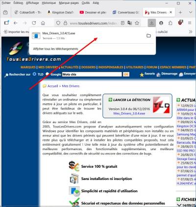 - Le logiciel vérifie la maj de “ Mes_Drivers_3.0.4.exe ”.