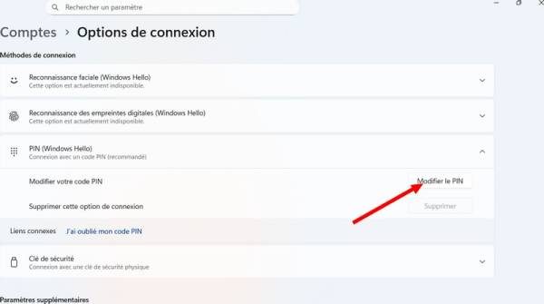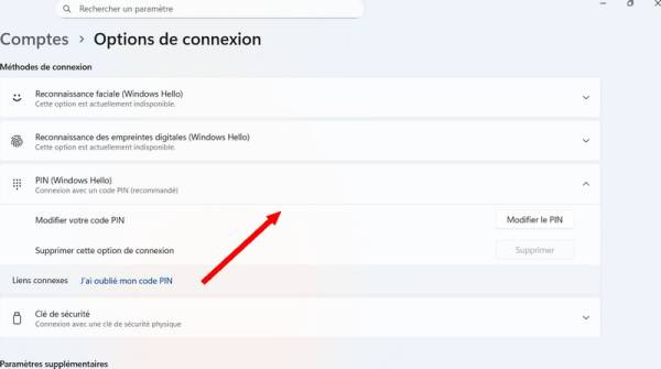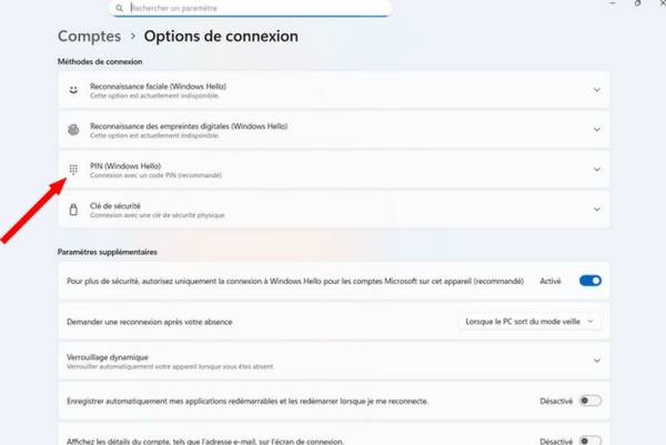- Cliquer la case “PIN (Windows Hello)”.