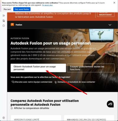 - Choisir “Obtenir Autodesk Fusion pour un usage personnel”.