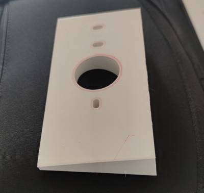 - Pour améliorer la visibilité d’une caméra de portier, un support en forme de triangle a été conçu sur mesure. Cette pièce, introuvable dans le commerce, a été entièrement développée, du dessin initial à sa fabrication. L’objectif était d’optimiser l’angle de vue et la fixation de la caméra pour une utilisation plus efficace. Après plusieurs essais et ajustements, la conception a abouti à une solution adaptée aux contraintes spécifiques de l’installation.